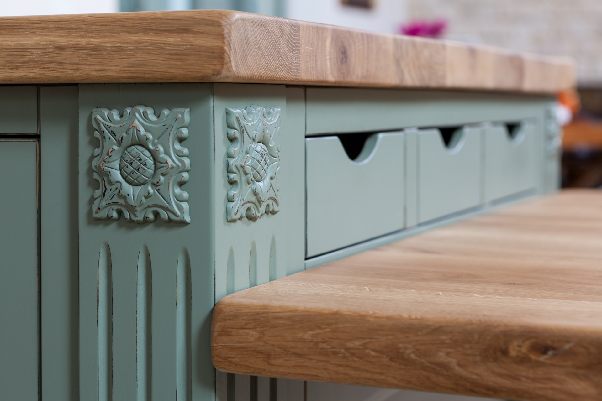 צבוע בצבע זית עומד במטבח.